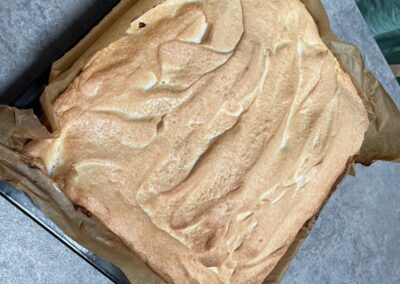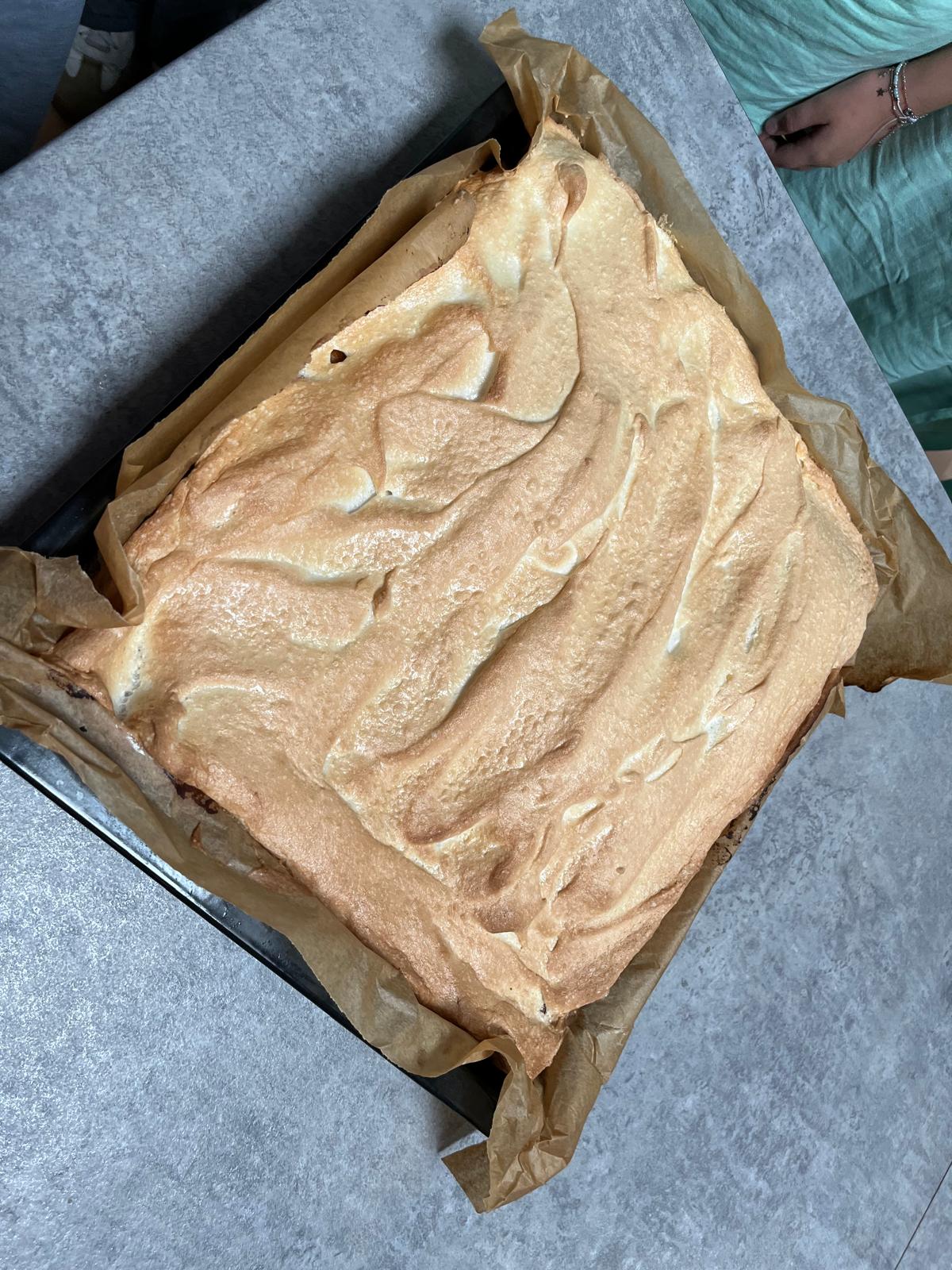 ciasto, rozprowadzić łyżką tworząc nierówną powierzchnię, blaszkę ponownie