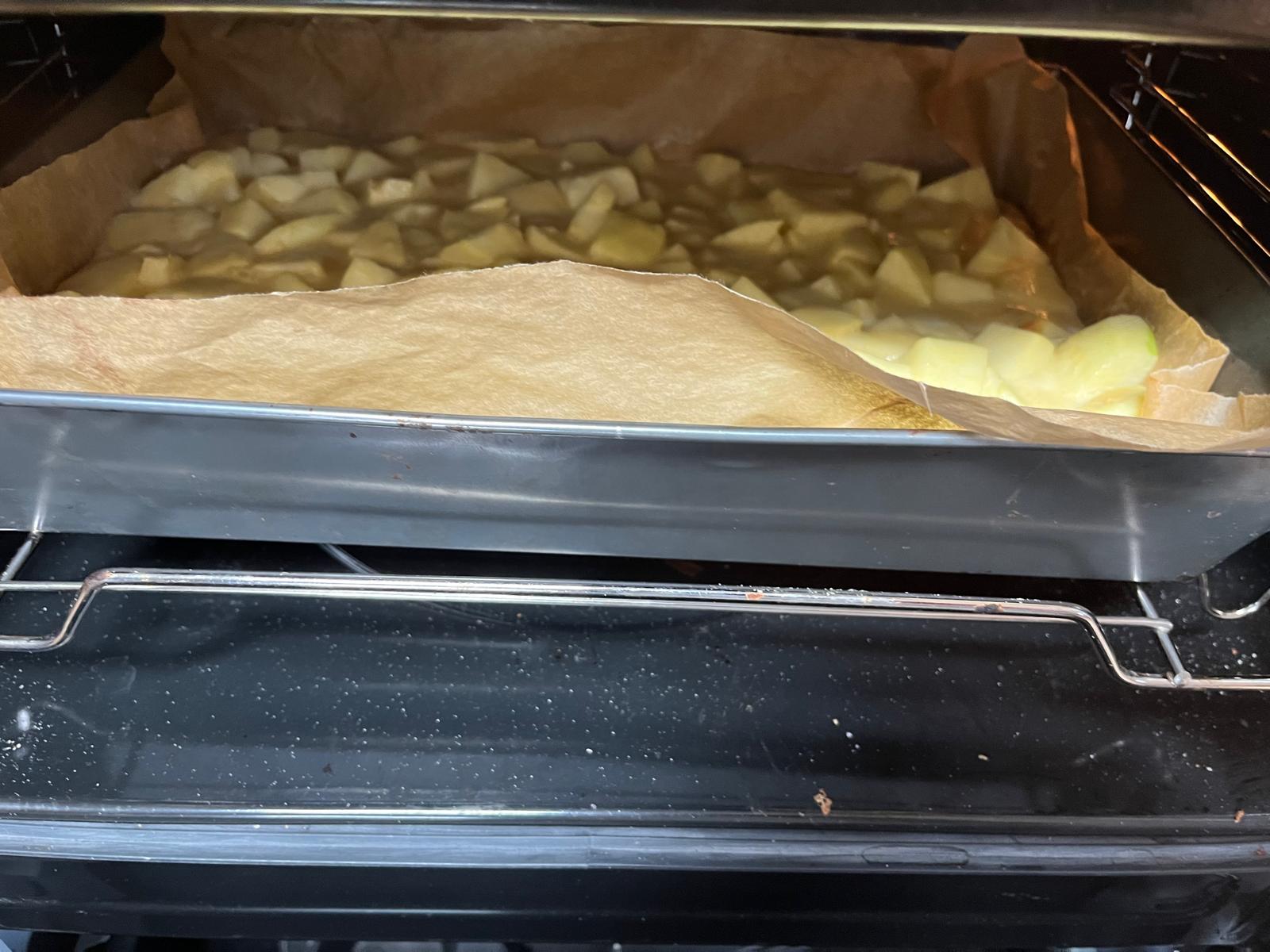CIASTO: Blaszkę o wymiarach 23×34 cm wyłożyć papierem do pieczenia.